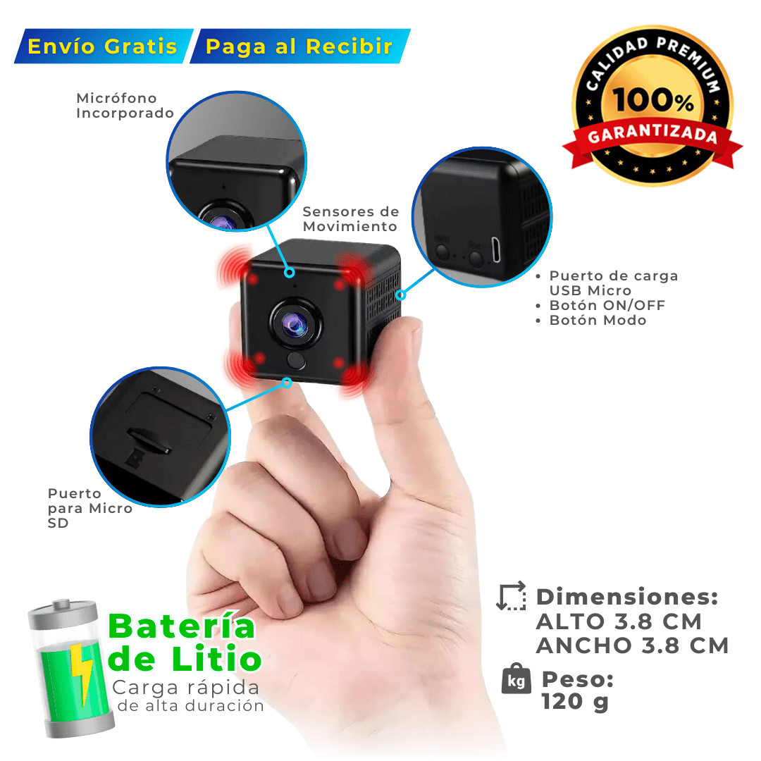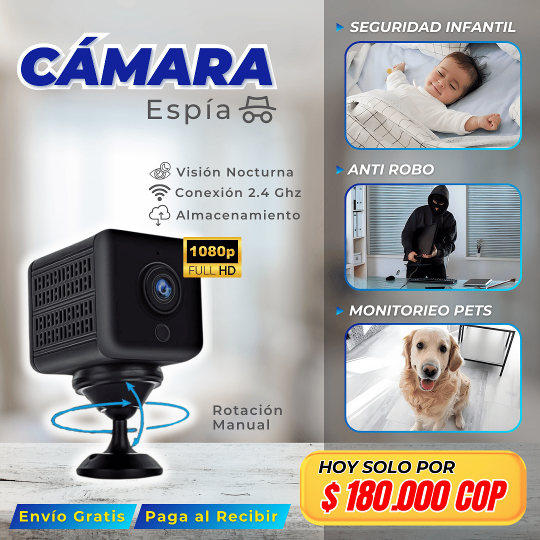 Cámara oculta de ultima tecnología perfecta para espionaje y brindar seguridad a tu familia u oficina, es inalámbrica, con imán fuerte y adhesivo, Rotación de 180°, con una batería de alta duración, fácil de usar, la tranquilidad la traemos a tus manos.